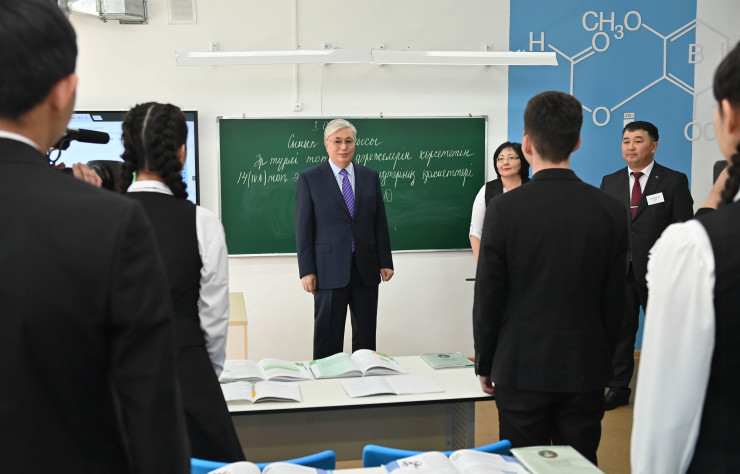 Президент Касым-Жомарт Токаев в ходе рабочей поездки в Жамбылскую область посетил среднюю школу в селе Коктал Байзакского района, передает Tengrinews.kz со ссылкой на пресс-службу Акорды.