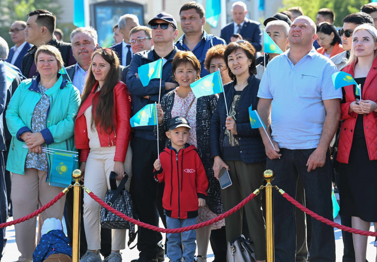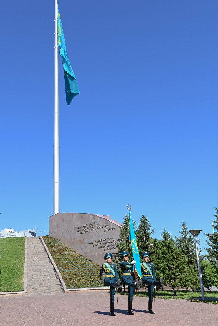 Токаев: Нам следует с утроенной энергией укреплять нашу государственность Касым-Жомарт Токаев на церемонии поднятия государственного флага в Нур-Султане. Фото пресс-службы Акорды.