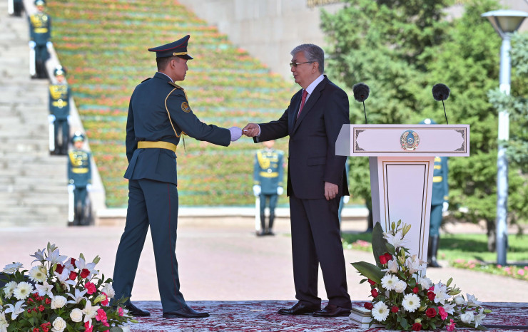 Также в своей речи Касым-Жомарт Токаев напомнил, что стало доброй традицией присвоение офицерских званий лучшим курсантам в рамках церемонии торжественного поднятия флага.