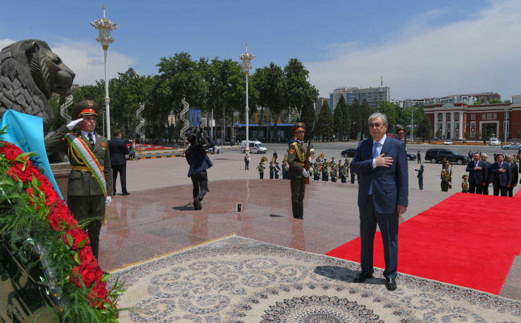 В рамках официального визита в Таджикистан Касым-Жомарт Токаев возложил венок к монументу, расположенному в мемориальном комплексе "Национального согласия и возрождения Таджикистана".