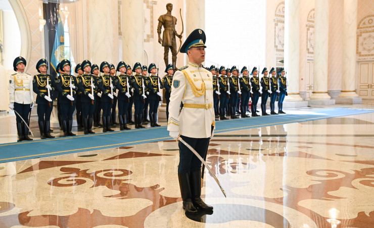 Начальник почетного караула отдал рапорт лидерам стран, затем прозвучали гимны Казахстана и Сингапура.