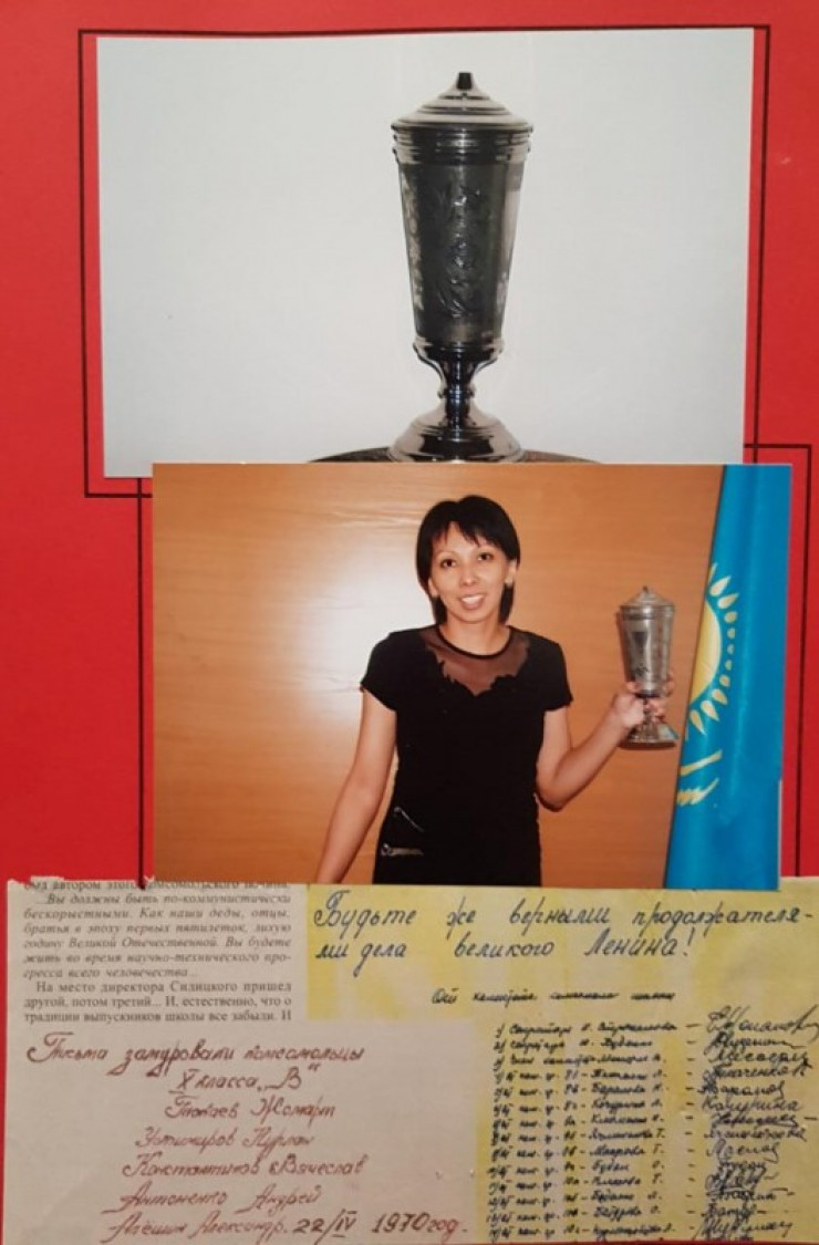 В 2003 году во время ремонта в гимназии был найден кубок с посланием комсомольцам XXI века. Вместе с письмом в тайнике лежала и фотография отправителей с ленинского субботника, в том числе юного Касым-Жомарта Токаева.