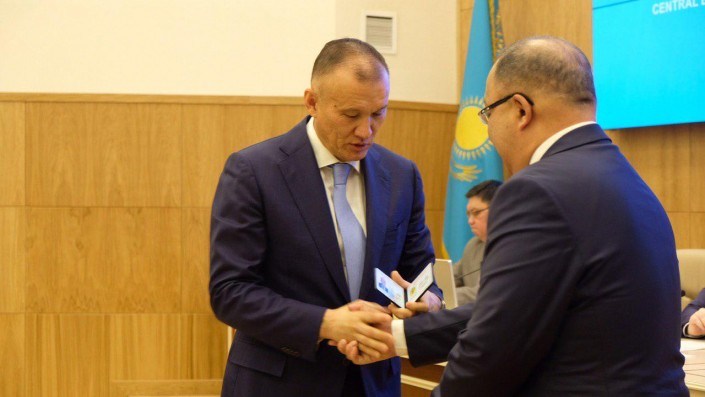 На заседании ЦИК Рахимбекову вручили удостоверение кандидата.