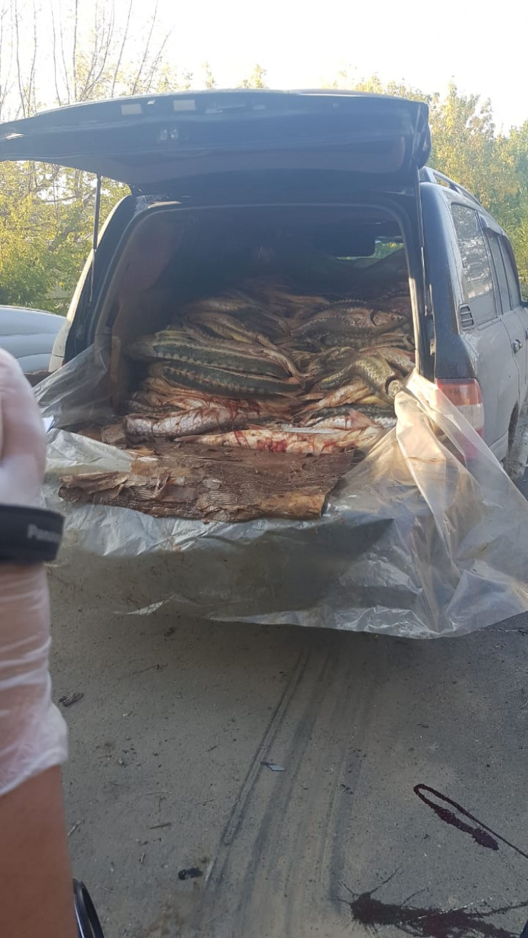 При проведении специальных оперативно розыскных мероприятий в рамках акции "Бекіре" сотрудниками Департамента полиции Атырауской области задержаны двое мужчин на трассе Атырау - Орал. Они на автомобиле Toyota Land Cruiser перевозили 345 рыб осетровых пород и икру кустарного производства.