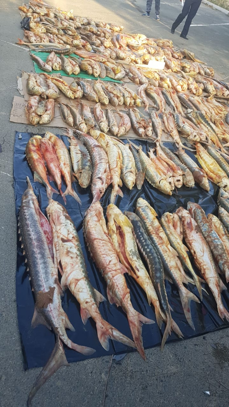"Общий вес изъятой красной рыбы составил свыше одной тонны, "улов" икры скромнее - 200 граммов. Задержаны 28-летний водитель автомашины и 29-летний пассажир. Оба молодых человека водворены в ИВС. Досудебное расследование проводится по части 2 статьи 339 УК Казахстана "Незаконное обращение с редкими и находящимися под угрозой исчезновения, а также запрещенными к пользованию видами растений или животных, их частями или дериватами", - сообщили в пресс-службе ДП области.