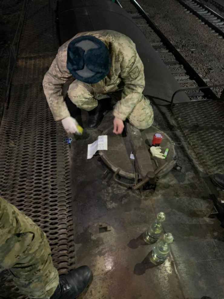 Сообщается, что 13 ноября 2021 года пограничным нарядом ПС КНБ РК в пункте пропуска "Чальдовар" (железнодорожный) Меркенского района Жамбылской области предотвращена попытка незаконного вывоза с территории Казахстана, предположительно, дизельного топлива в количестве 68 тонн и бензина в количестве 120 тонн (вид топлива будет установлен экспертизой).