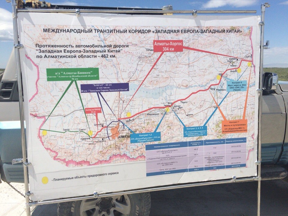 Строительство международного транзитного коридора "Западная Европа - Западный Китай" подходит к концу. Крупный участок этого коридора - трасса "Алматы - Хоргос", протяженностью в 304 километра, будет сдан в ноябре 2016 года. Об этом корреспонденту Tengrinews.kz рассказал заместитель председателя Комитета автомобильных дорог Сайранбек Бармаков во время автопробега "От Хоргоса до Турсунзаде".