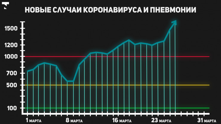 12 марта впервые за долгое время суточный прирост заболевших превысил тысячу человек, и с тех пор их число только растет.