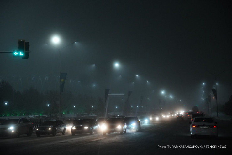 Вечером 30 ноября в Нур-Султане поднялся туман. Видимость на дорогах снижена, передает корреспондент Tengrinews.kz.
