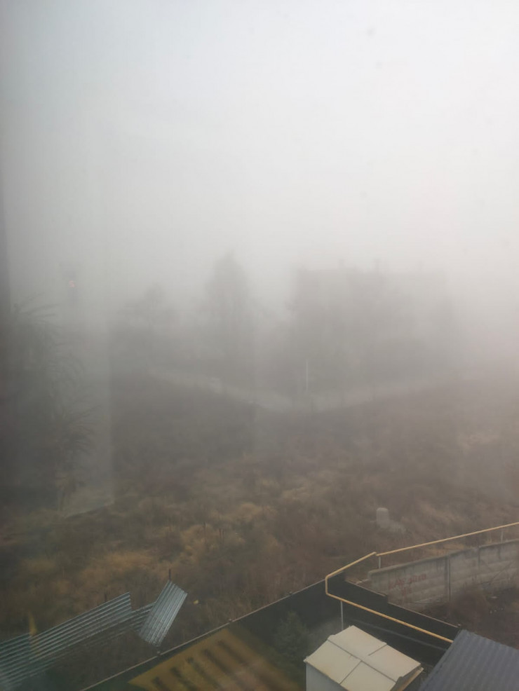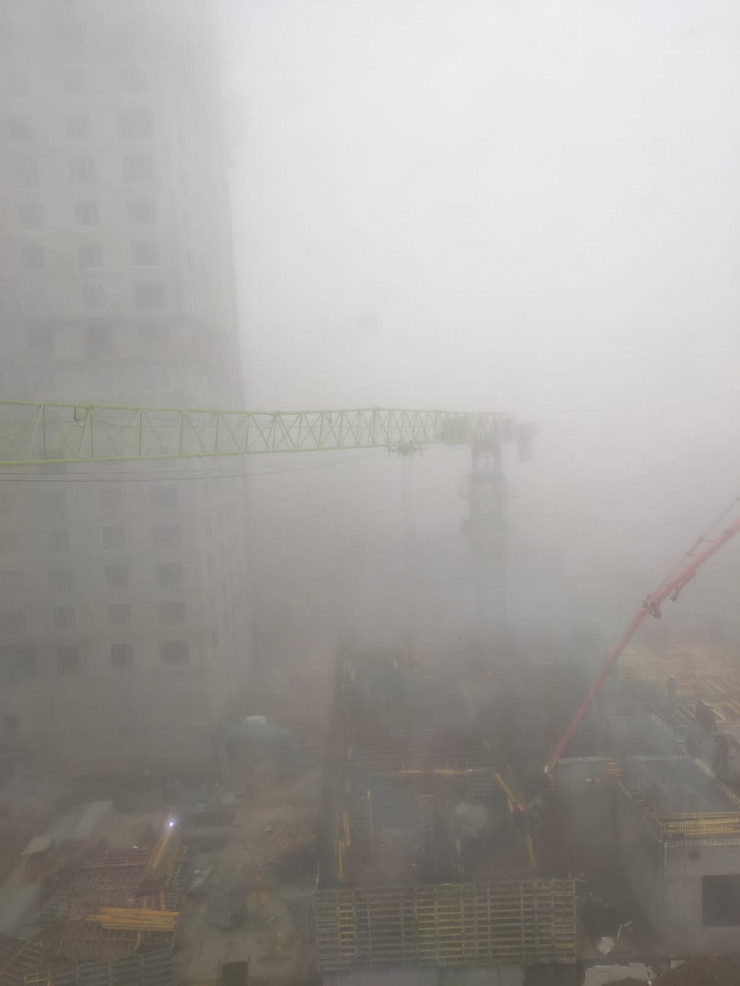 Снижение видимости в районе ледового дворца "Алматы Арена" умеренное. Жильцы близлежащего жилого комплекса Alatau city сообщают, что за окном видят туман, но он не такой густой.