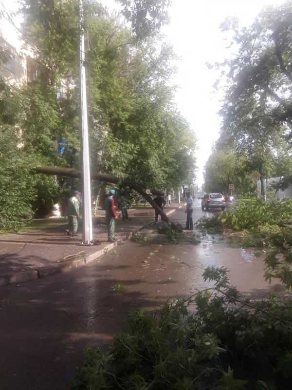 Где-то из-за непогоды повалило дерево. Как сообщила пресс-секретарь акима района Сарыарка Бибигуль Абыддин, коммунальные службы уже устранили помеху на дороге.