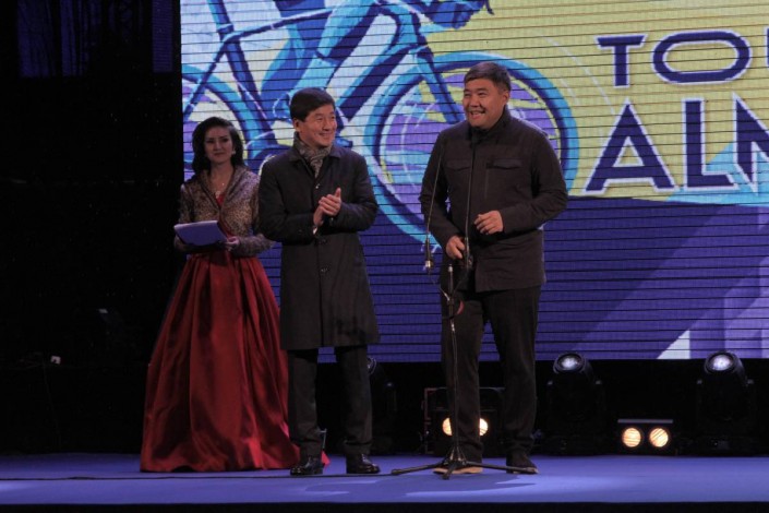 Также в рамках презентации "Тура Алматы" была представлена новая команда Apple Team, которая в следующем году тоже примет участие в этой гонке. Казахстанский гонщик Максат Аязбаев, ранее выступавший за "Астану", вручил майку новой команды акиму Алматы Бауыржану Байбеку.