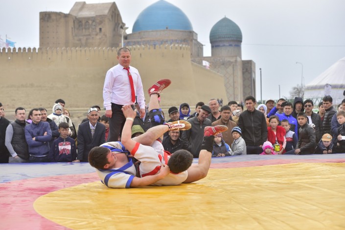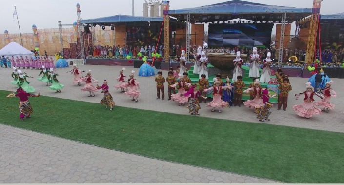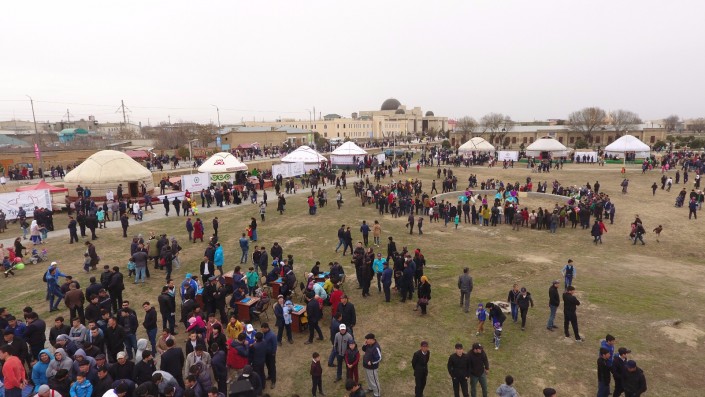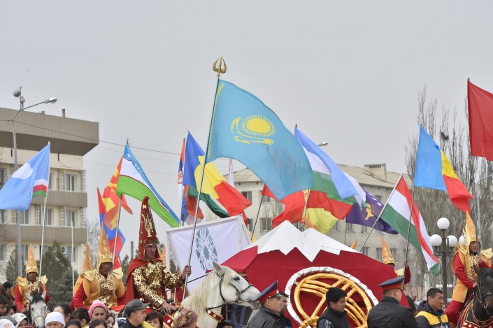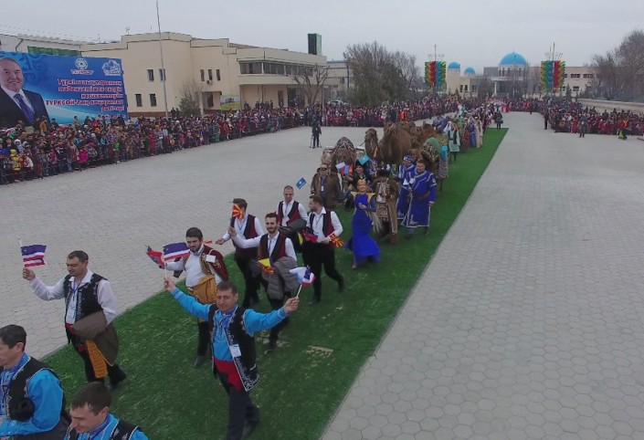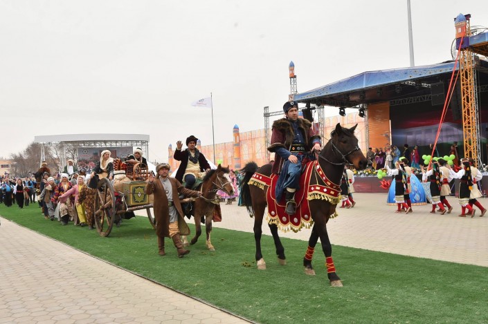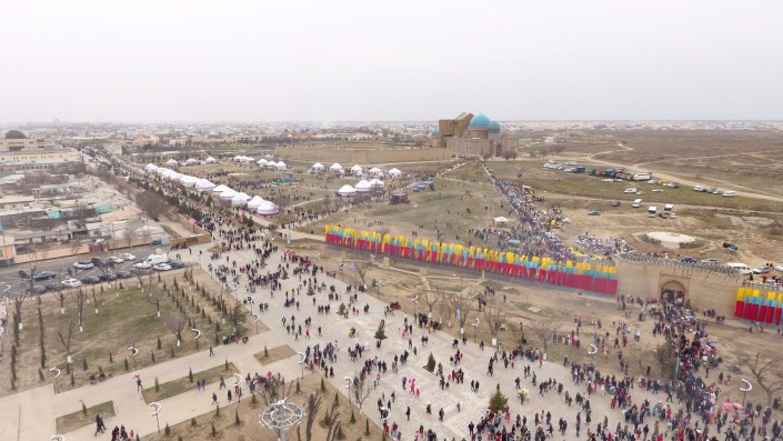 Масштабное действо развернулось во вторник, 21 марта, в одном из древнейших городов страны. Более 10 тысяч гостей встречали сегодня в Туркестане на праздновании Наурыза. Возле Мавзолея Ходжи Ахмета Яссауи был воссоздан этноаул: установлены 33 юрты, национальные качели алты-бакан, дастарханы, которые ломились от национальных угощений: казы-карта, жал-жая, кумыса, шубата, курта, иримшика, жента и многого другого. Только плова было приготовлено более тонны и более 1500 литров наурыз-коже. Таким образом южно-казахстанцы пытались показать гостям из 15 стран, что Туркестан на самом деле является культурной столицей Тюркского мира.