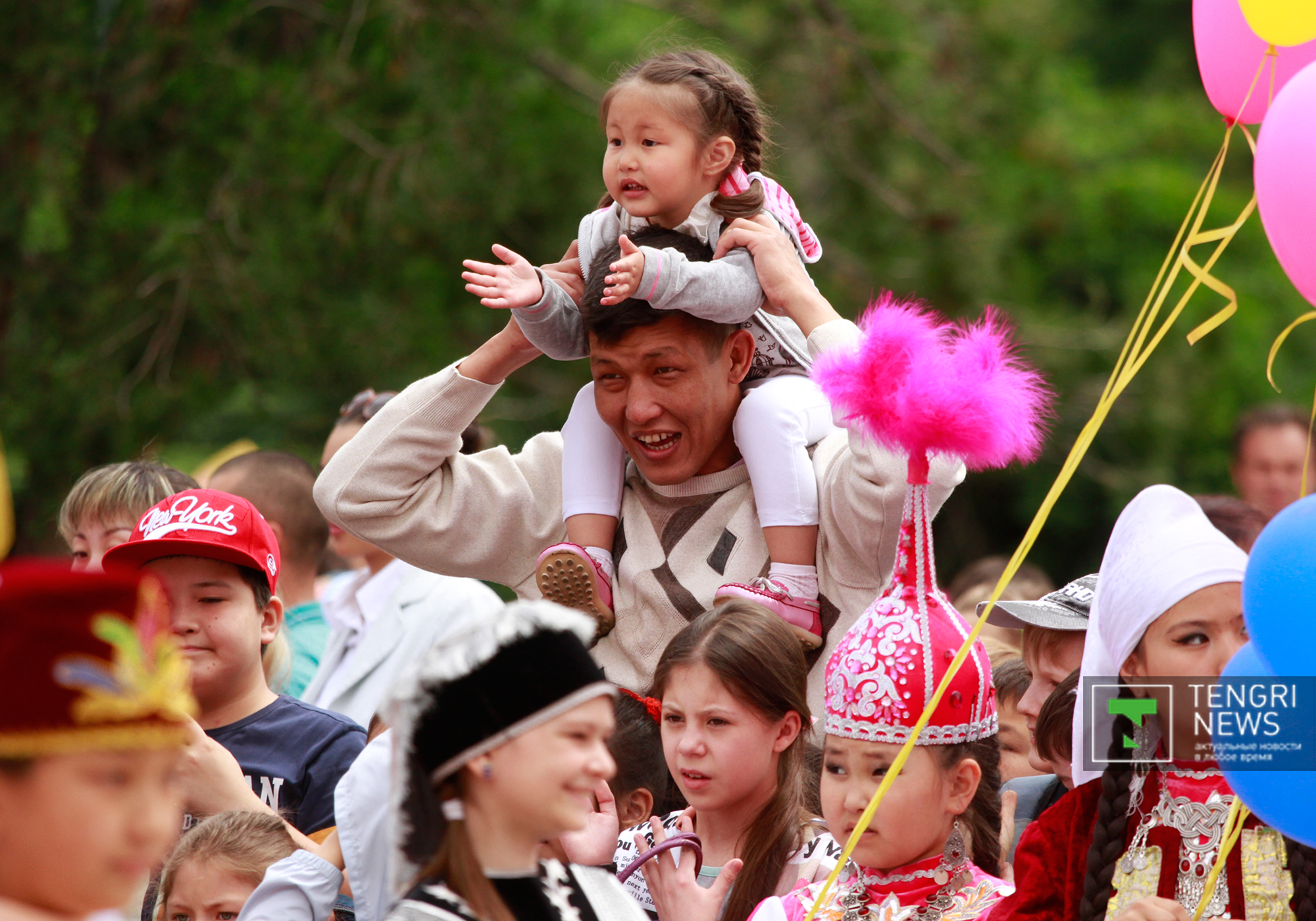 На концерте, который проходил у входа в Центральный парк, выступила певица Макпал Исабекова и юные артисты. Множество зрителей собрал и конкурс "Бозторғай" на сцене Летней эстрады. Одна из посетительниц тоже решила показать свой талант. Двухлетняя девочка по имени Мадина умеет артистично стоять на папиных руках. Ее отец Мадияр Аппазов отметил, что в его семье нет артистов или музыкантов, тем не менее родители будут развивать таланты дочери. "Мы ее не учили, она сама проявила свой талант. На руках стоит с первого года. Думаем отдать дочку на танцы", - сказал отец девочки.