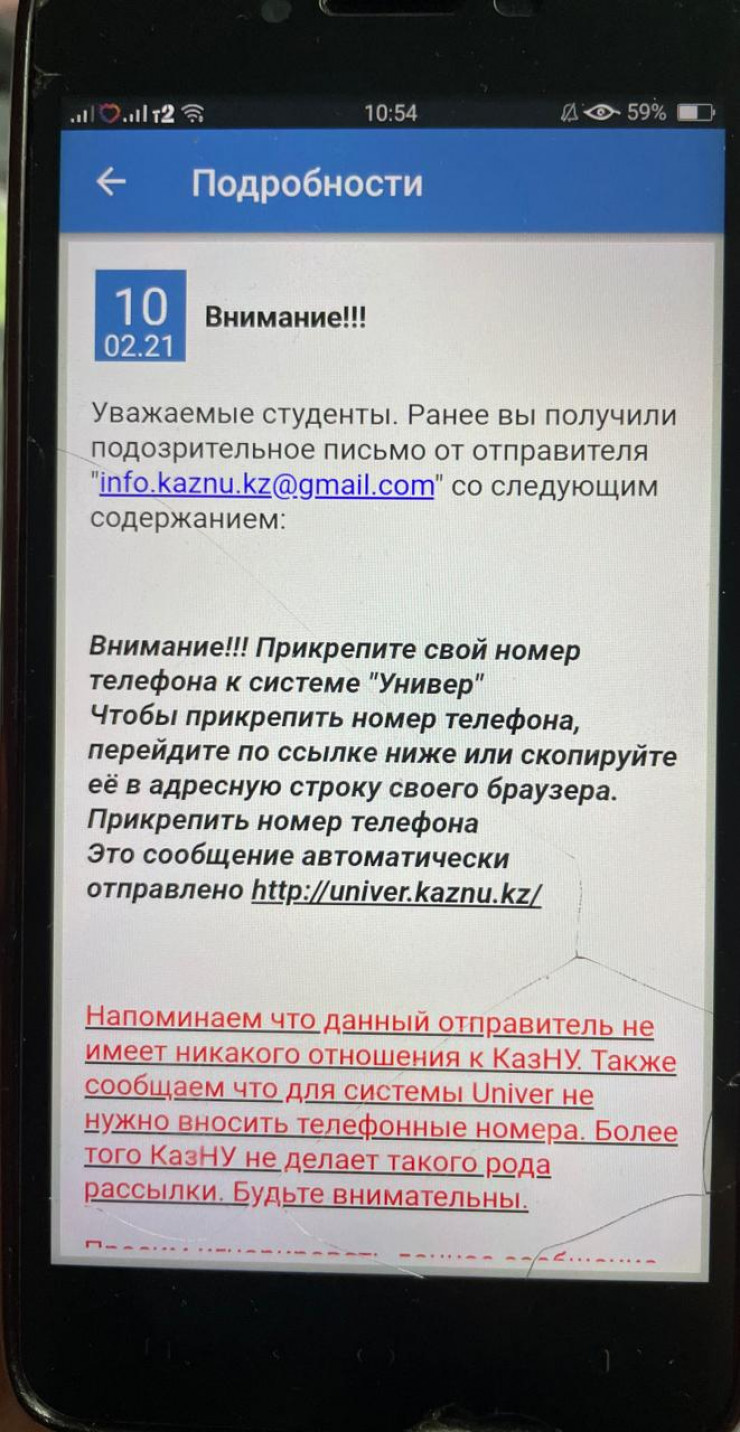 "Следует отметить, что в информационной системе Univer не хранятся реквизиты банковских карт студентов и иного рода конфиденциальные данные. Университетом после данного инцидента был принят ряд дополнительных мер по пресечению попыток получить доступ к учетным записям студентов. Все преподаватели, сотрудники и студенты были проинформированы о данном случае, а также о необходимости соблюдения мер защиты персональных данных", - заключили в КазНУ.