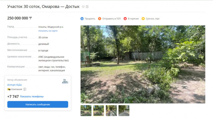 Ранее в соцсетях пользователи обсуждали объявление о продаже земли у Терренкура. В описании сообщалось, что площадь территории равна 30 соткам, за которые владелец планирует выручить 250 миллионов тенге.