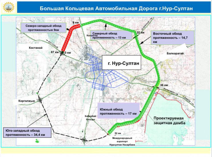 Участок большой кольцевой дороги Нур-Султана закроют на ремонт до августа