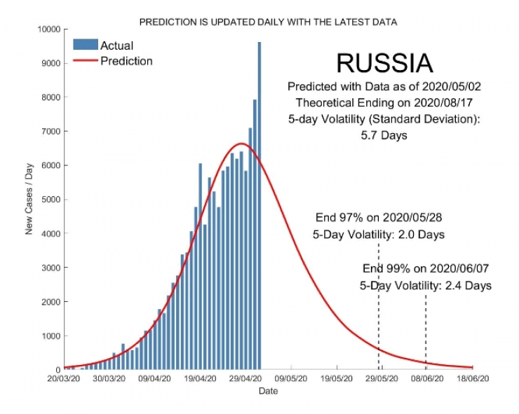 В России, согласно выводам ученых, эпидемия полностью утихнет 17 августа, а не 20 июля, как предполагалось в первоначальном прогнозе.