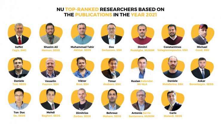 Исследователи Стэнфордского университета ежегодно составляют рейтинг лучших ученых мира на основе систематического библиометрического исследования. Рейтинг представляет собой две разные базы данных: одна на основе всего карьерного пути ученых, вторая - по достижениям за последний год. Согласно последним данным, опубликованным 3 ноября 2022 года, ученые Назарбаев Университета (NU) вошли в список 2 процентов топ-ученых мира на основании влияния их публикаций в соответствующих областях в 2021 году.
