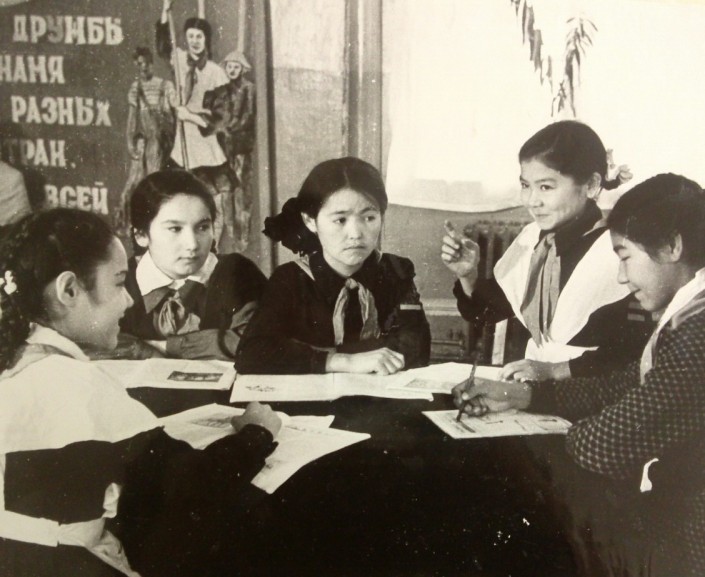 В послевоенные 1948-1949 годы в школе, где обучались 765 детей, было 25 классов, 12 из которых казахские, 13 - русские. При школе были интернат на 150 детей, спортивные площадки, парковая зона.