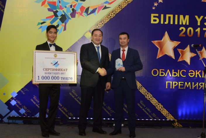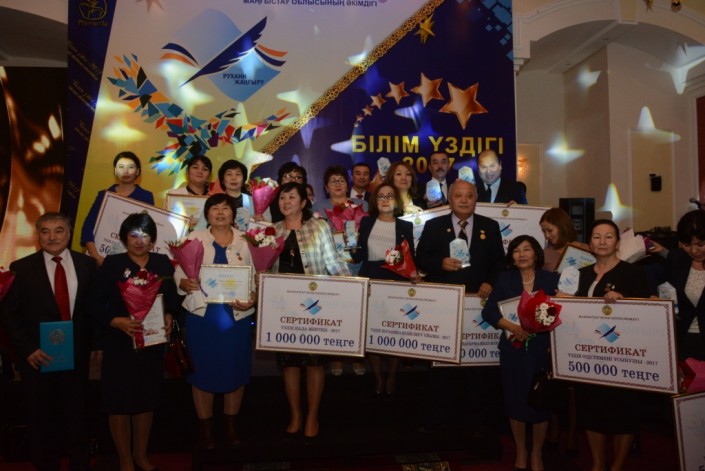 В номинации "Лучший учитель года" победил Бауыржан Айманов, который получил специальный приз от акима области Ералы Тугжанова - сертификат на сумму один миллион тенге. Бауыржан Сагидоллаевич - учитель истории в школе-лицее Акшукура Тупкараганского района. Лучший читатель республиканских методических изданий "История Казахстана", "История казаха" и автор статей, победитель в номинации "Лучший автор научного доклада" в международном конкурсе "Түркістан-20", автор учебника "Өлкетану". 11 учеников стали победителями в областной, девять учеников в республиканской предметной олимпиаде.