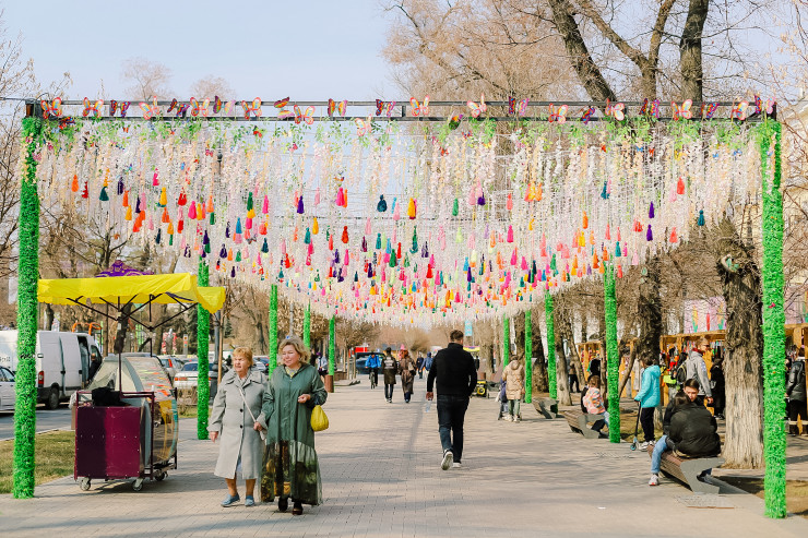 В этом году Алматы по-особенному красочно принарядили к празднику Наурыз.