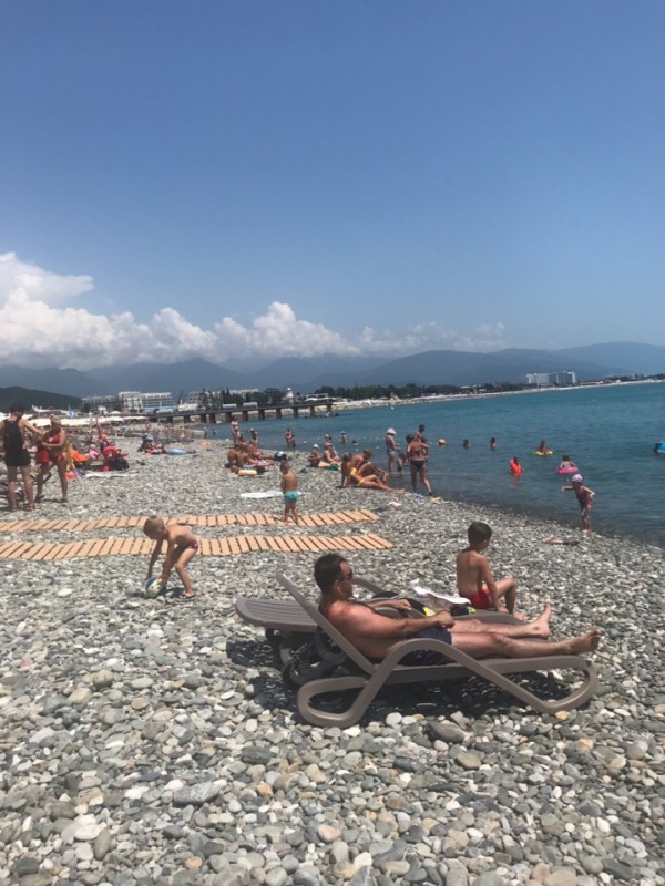 Для туристов, проживающих в отелях курорта, в летний период организован трансфер на пляж, расположенный на берегу Имеретинской бухты. К услугам гостей - лежаки, зонты, полотенца и удобные раздевалки. Для самых маленьких работает детская анимация и детская площадка.