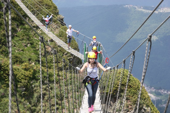 Все, кто преодолел "путь к вершинам" и поднялся на смотровую площадку Розы Пик, могут пройти над пропастью по подвесному деревянному мосту.