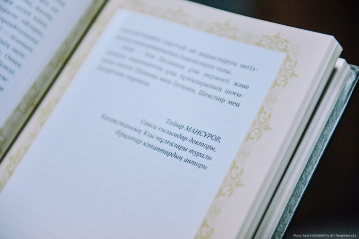 В 2002 году Сауле Мансурова издала книгу малого формата, куда вошли избранные поэтические произведения Абая и, конечно, "Слова назидания", а в 2003 году - книгу более крупного формата, тиражи были по 5 тысяч экземпляров. Кстати, обе книги позже были переизданы. В 2010 году вышел сборник "Пушкин и Абай. Созвучье звуков, чувств и мыслей", подготовленный также Сауле Мансуровой. В книгу вошли стихи Пушкина и Абая, поэтические послания двум вершинным поэтам, лучшие поэтические произведения Абая, его знаменитые "Слова назидания", его переводы гениальных творений Пушкина. В 2017 году издательство "Художественная литература" выпустило второе, дополненное издание этого сборника. Так что наш семейный тандем давно и глубоко погружен в тему Абая", - поделился Таир Мансуров.