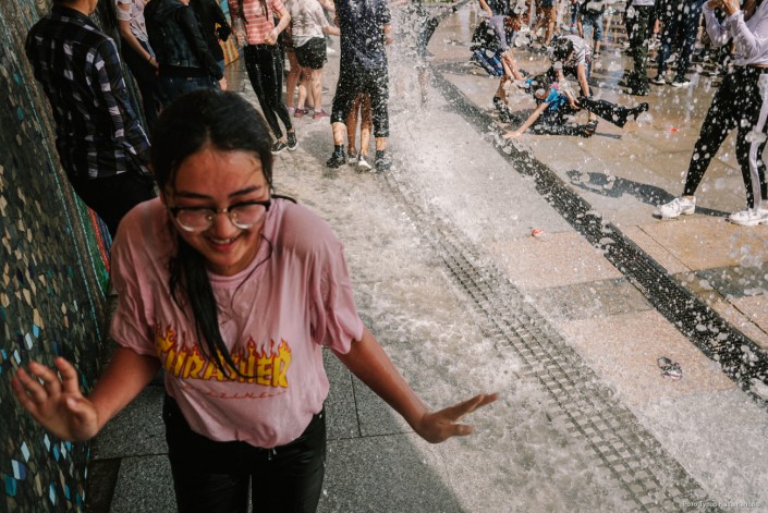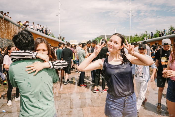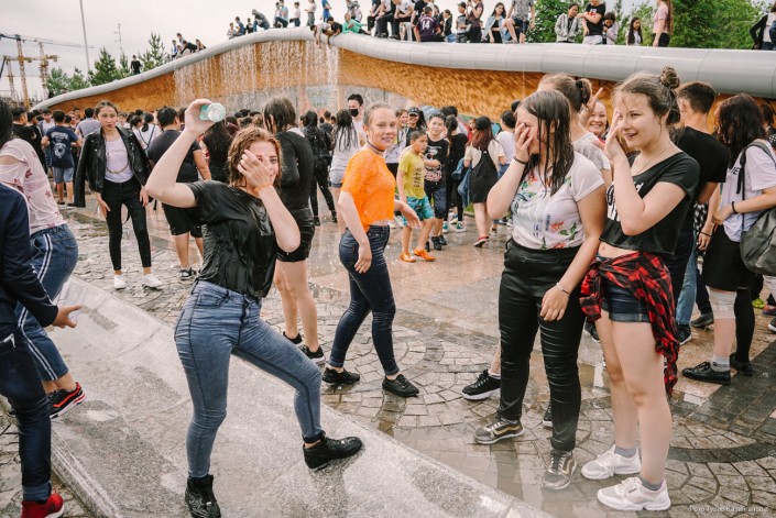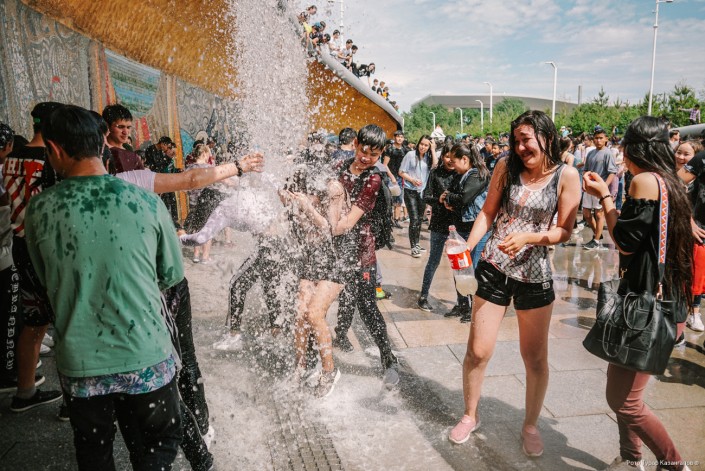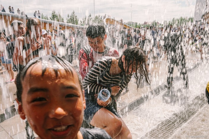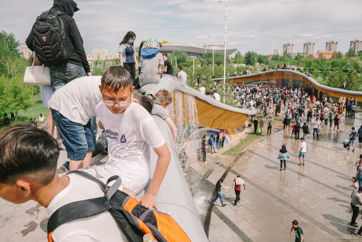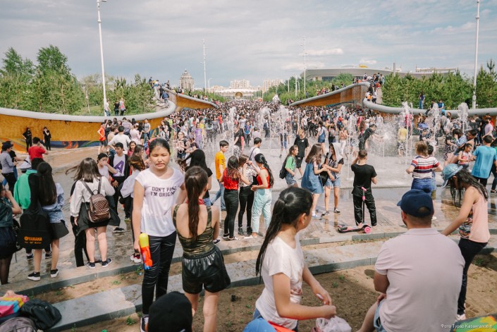 Молодые жители главного города Казахстана буквально заполонили Центральный парк, чтобы спастись от жары в фонтанах. Со стороны это выглядит как какое-то безграничное веселье.