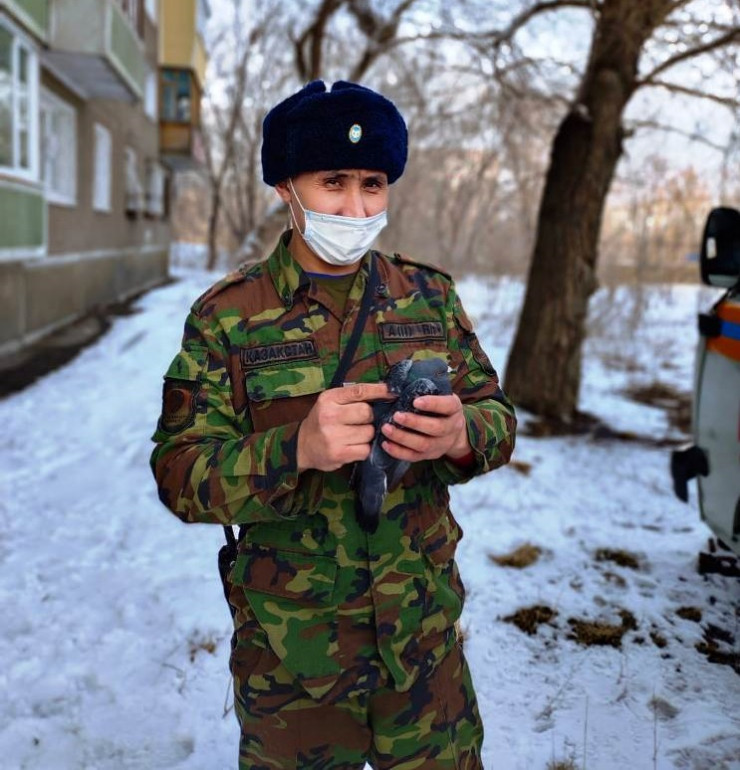 Спасатели Усть-Каменогорска провели операцию по освобождению голубя, который просидел на дереве сутки. Птица запуталась в медицинской маске и не могла самостоятельно выбраться из западни.