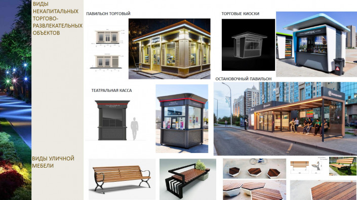 Кроме того, утверждены виды некапитальных торгово-развлекательных объектов, а также виды уличной мебели.