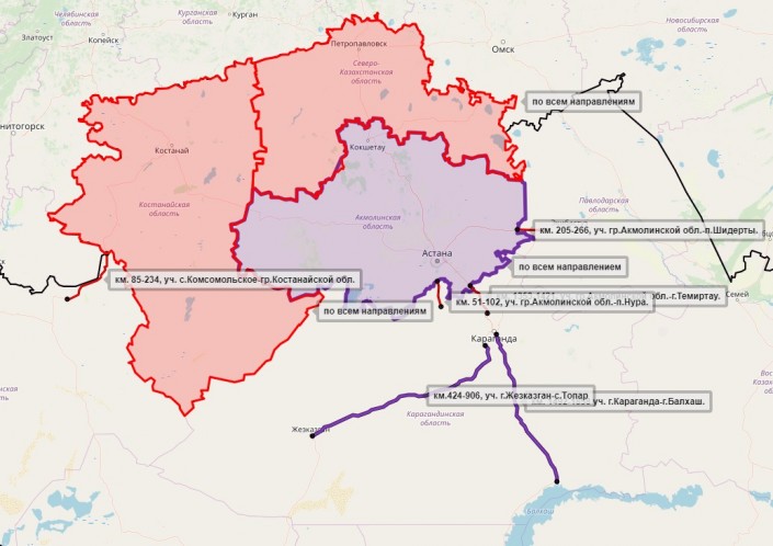 Между тем в Карагандинской области для грузового и общественного транспорта закрыты дороги от Караганды до Балхаша и от Жезказгана до села Топар. Также ограничено движение от границ Акмолинской области до Темиртау и поселка Нура.