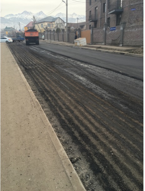 В управлении Государственного архитектурно-строительного контроля сообщили, что на данном объекте производятся работы по строительству водоканала. "На фото из обращения видно, что проложено асфальтобетонное покрытие по траншее на месте производства работ, после чего была произведена фрезеровка существующего полотна. На данный момент подрядной организацией АО "Алматыинжстрой" построен водовод протяженностью 1 километр по улице Саяна Шаймерденова, ведутся работы по восстановлению асфальтобетонного покрытия на всю ширину проезжей части, проложен первый, крупнозернистый слой", - сообщили в управлении. Свой ответ специалисты также сопроводили фотографиями: