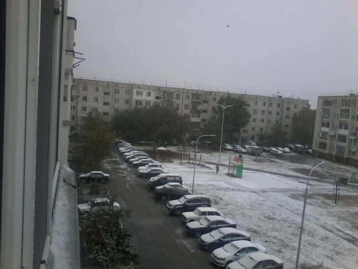 Снег в Акмолинской области начал идти еще ночью. Стоит добавить, что там заметно похолодало - температура воздуха составляет от 0 до +3 градусов.
