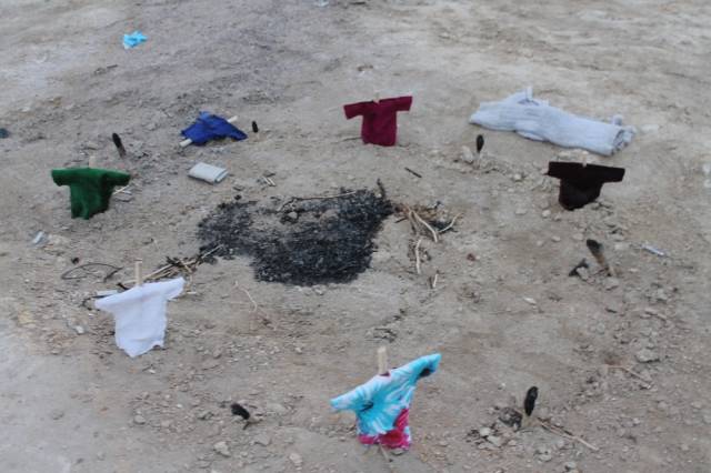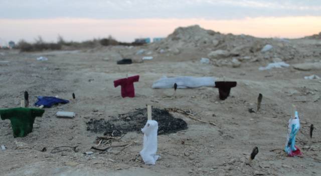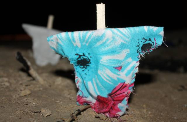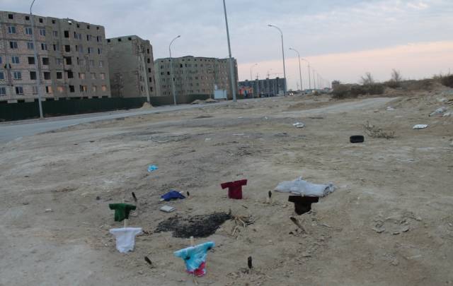 Житель Актау случайно обнаружил в 33-м микрорайоне города элементы загадочного ритуала - круг из скрещенных палок на земле, на которые были надеты "рубашки". О своей находке мужчина рассказал местному изданию "Лада".