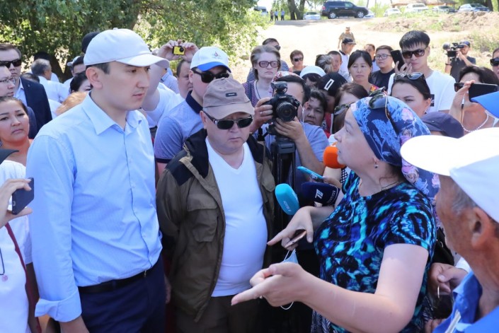 "Сегодня я сюда прибыл по поручению Главы государства. Хотел бы отметить, что Президент очень хорошо знает экологические проблемы данного региона. (...) То есть мы должны создать очень мощную рабочую группу, в которую мы пригласим экспертов из города, пригласим активистов. Эта рабочая группа должна заседать абсолютно открыто. В нее войдут представители государственных органов. Рабочая группа будет работать совместно с акиматом области, с акимом области. Мы приняли решение о том, чтобы пока временно приостановить эти работы до нахождения ответов на эти вопросы", - сказал Мирзагалиев.