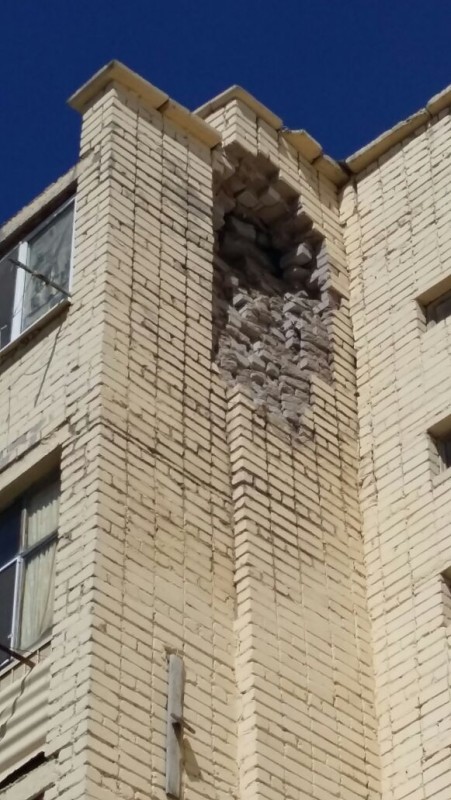 В Актобе жители многоэтажного дома по улице Акимжанова, 136 опасаются, что окажутся под завалами. С самого верхнего пятого этажа дома 1988 года постройки, идет разрушение здания, почти каждый день оттуда сыпятся кирпичи, рассказала корреспонденту Tengrinews.kz домком Бидаш Агниязова.