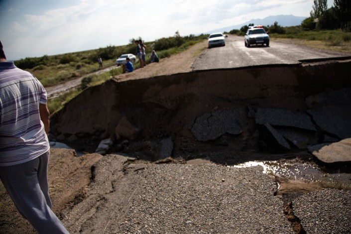 В Алматинской области из-за сильных дождей размыло дорогу