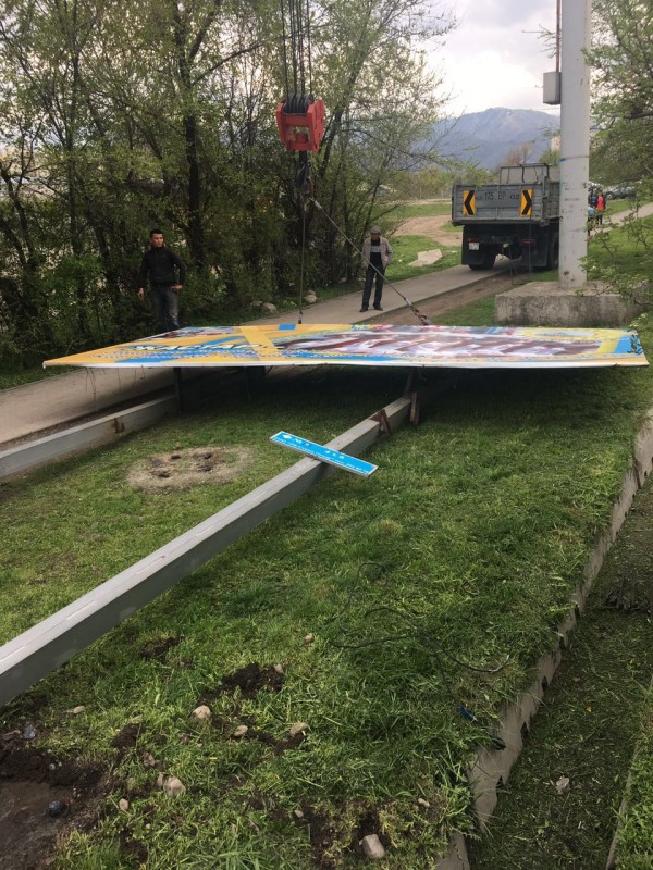 В городе таких конструкций 138 из почти 2000. За первый день собственниками билбордов на добровольной основе была демонтирована 41 конструкция в семи районах города. Ожидается, что остальные конструкции будут демонтированы до конца текущей недели. В дальнейшем все рекламные щиты Алматы будут приведены к единым архитектурным стандартам.