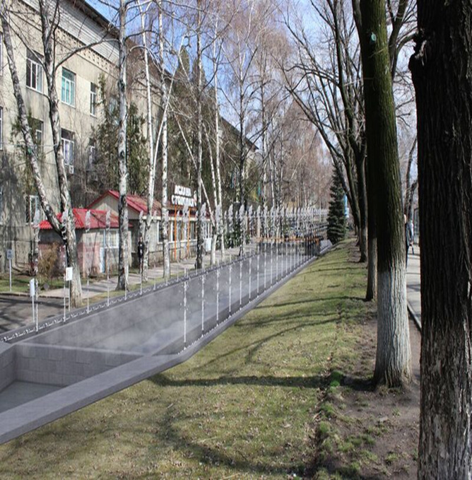 На месте старого неработающего бассейна на пересечении проспекта Абая и улицы Байсеитовой появится фонтан в виде спиральных струй, также с ночной подсветкой.