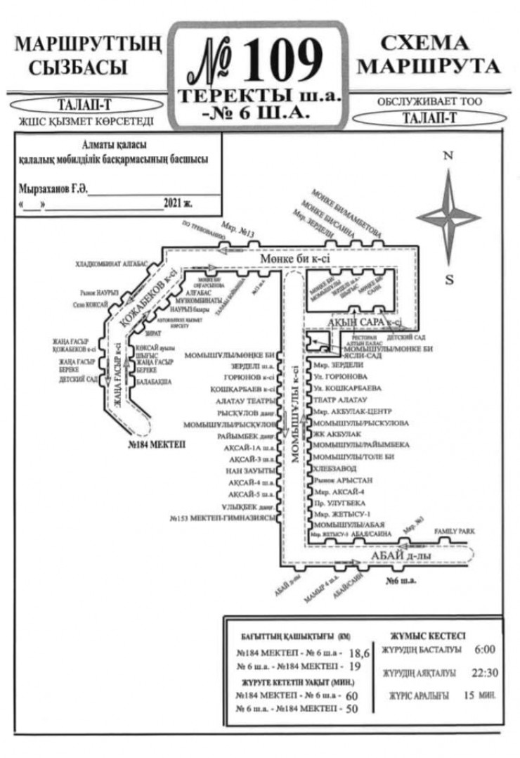 В аккаунте Транспортного холдинга Алматы в Telegram сообщили о запуске с 14 июля нового маршрута. Маршрут № 109 будет обслуживать компания ТОО "ТАЛАП-Т".