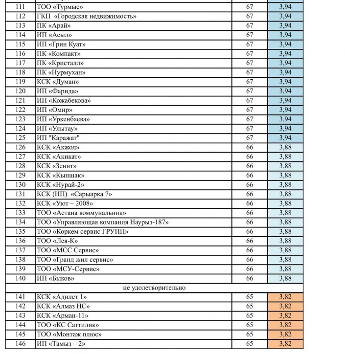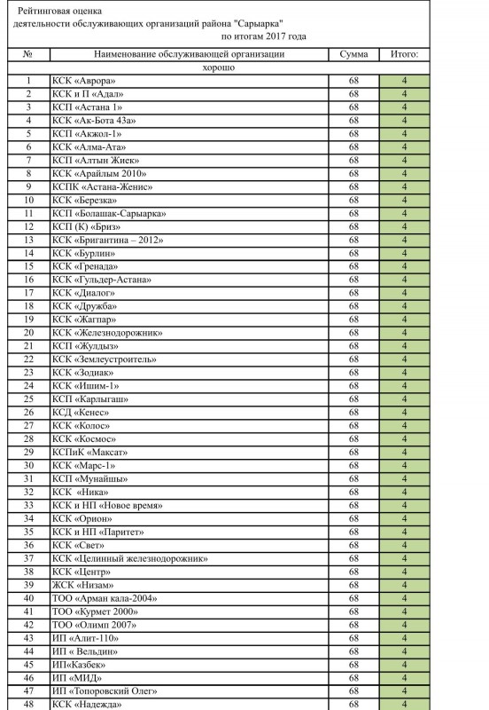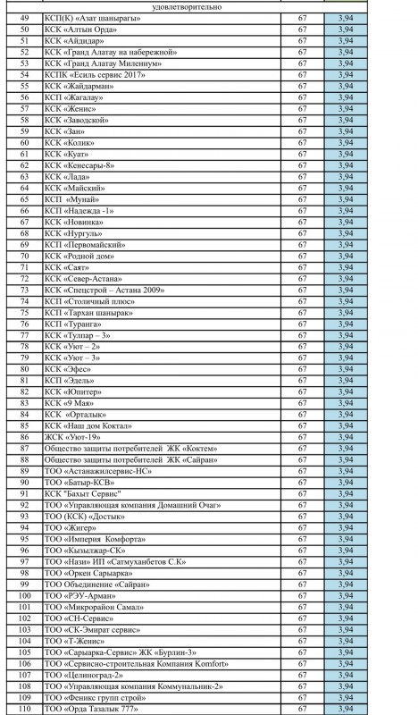 "Деятельность КСК это, наверное, одна из наиболее обсуждаемых тем жителями любого города. Специальная рабочая группа, в состав которой вошли депутаты маслихата Астаны, представители городских управлений и служб, ассоциаций, общественные деятели и активные жители района, подвела итоги деятельности КСК и обслуживающих организаций района за 2017 год и выявила следующие результаты. Из 146 действующих организаций КСК района работа 48 оценена на "хорошо", 92 - на "удовлетворительно", и работа шести организаций признана "неудовлетворительной", - написал Турлубек в Facebook.