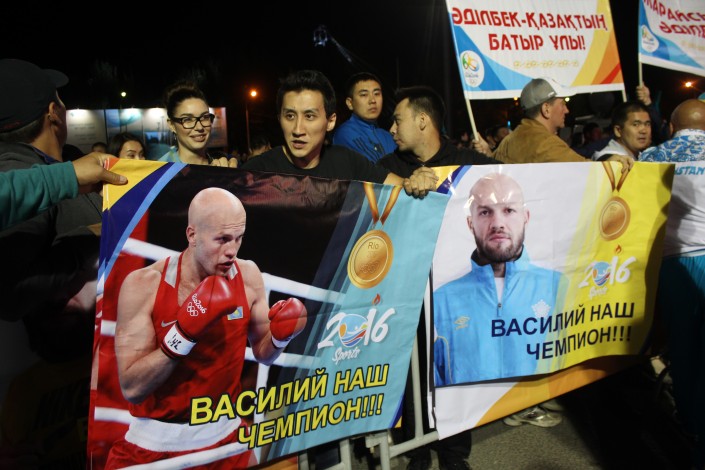 Встречать спортсменов приехал лично аким города Асет Исекешев. Он одним из первых поздравил призеров Олимпиады с триумфом на Рио. Затем участники летней Олимпиады утонули в объятиях своих родных и близких. Пройдя паспортный контроль спортсмены вышли к толпе болельщиков. Увидеть вживую героев приехали сотни астанчан и гостей столицы. Поздравить своего отца, несмотря на позднее время, приехал и малолетний сын Данияра Елеусинова Даниэль.