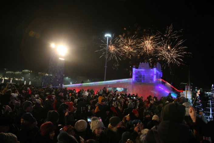 После торжественного зажжения новогодней елки жителям и гостям города подарили праздничный салют.