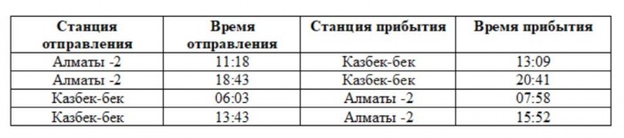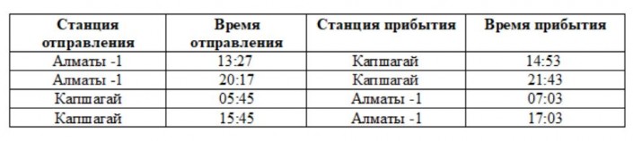 Периодичность курсирования поездов: ежедневно, утром из Капшагая и Узынагаша, а вечером отправлением из города Алматы.