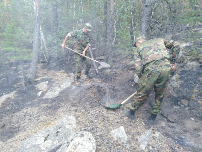 В тушении пожара были задействованы 51 человек и 13 единиц техники ДЧС, национального природного парка, добровольных пожарных формирований. Также были привлечены два вертолета спасательной авиации КЧС и национального природного парка. Вертолетом Ми-706 АО "Казавиаспас" КЧС было произведено 19 сбросов воды, это около 57 тонн.