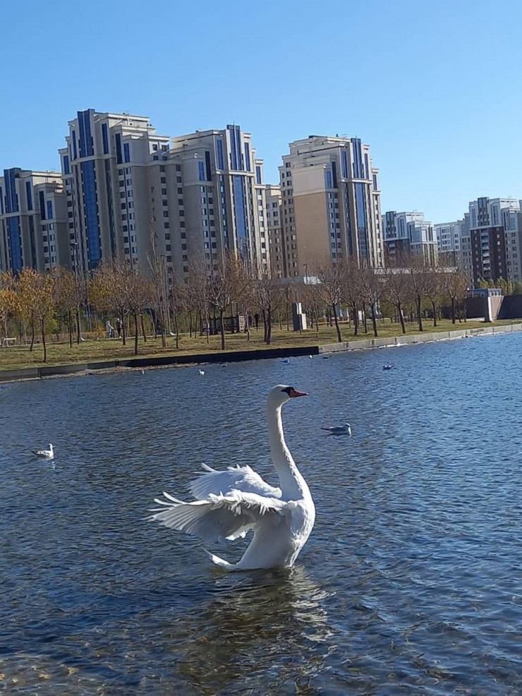 В Астану прилетели лебеди, передает корреспондент Tengrinews.kz. Как сообщают горожане, они обосновались в Ботаническом саду столицы.