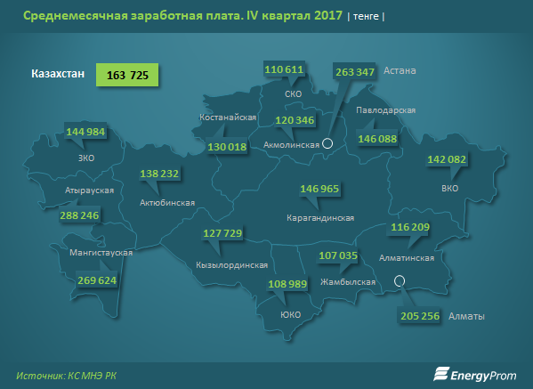 Наибольший реальный рост зарплат отмечен в Костанайской и Актюбинской областях - на 2,1 процента за год, до 138,2 и 130 тысяч тенге соответственно. Самое заметное падение покупательской способности заработных плат зафиксировано в Мангистауской области - сразу на 8 процентов, до 269,6 тысячи тенге. Это единственный регион, где отмечено номинальное сокращение зарплат - на 1,5 процента.
