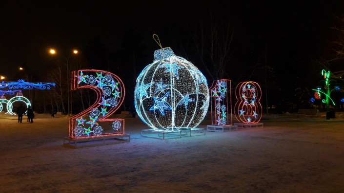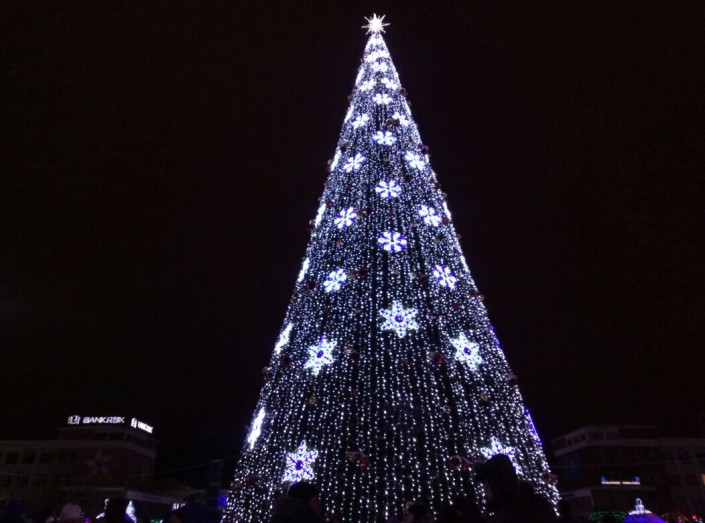 В этом году установлены три елки, для этого на средства из бюджета были приобретены две новые. Размещены они в новом парке по улице Гашека и на территории Бульвара молодежи. Здесь же установлены светодиодные композиции различных форм и размеров, оформлены деревья центральных аллей. Засверкают также более десяти светодиодных фонтанов. Конструкции изготовлены и оформлены таким образом, что они создают впечатление реальных водных брызг.